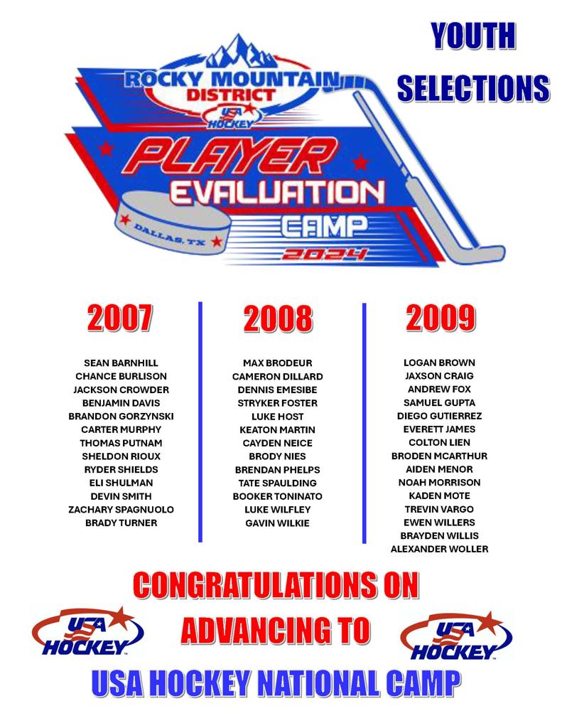 RMD PEC YOUTH SELECTIONS TO NATIONAL CAMP